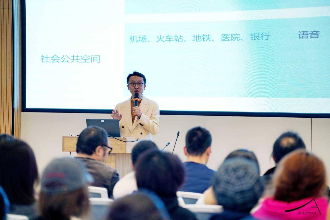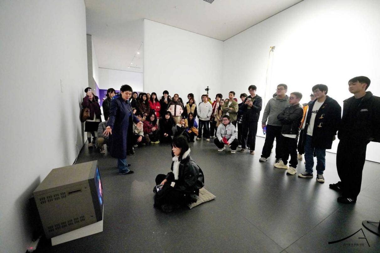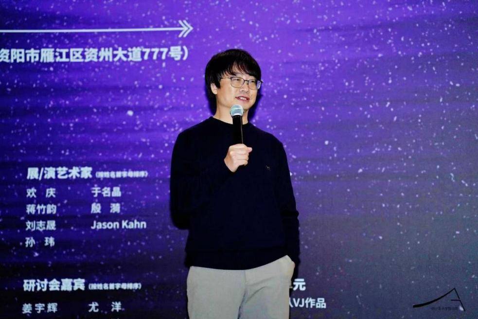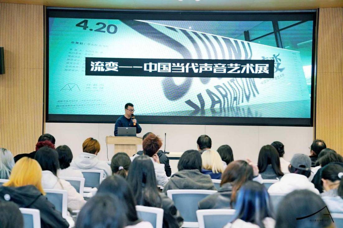 “声音与形状:实验艺术展:单元(一)赫兹,赫兹”展览开幕当日,四川音乐学院美术馆举办了系列学术分享及对谈活动。姜宇辉教授以《声音作为重建在世纽带的氛围性媒介》为主题,从个人声音体验与学术研究出发,分享了声音与人类生存、艺术发展及当代社会的深层关联。他结合中国声音艺术的发展现状,提出声音艺术对突破视觉中心主义、推动当代艺术多元发展的意义。最后姜宇辉教授热情回应听众的提问,围绕说唱与噪音、背景音乐泛滥、声音与语言、视听关系等话题,深化了对声音本质与当代价值的思考。